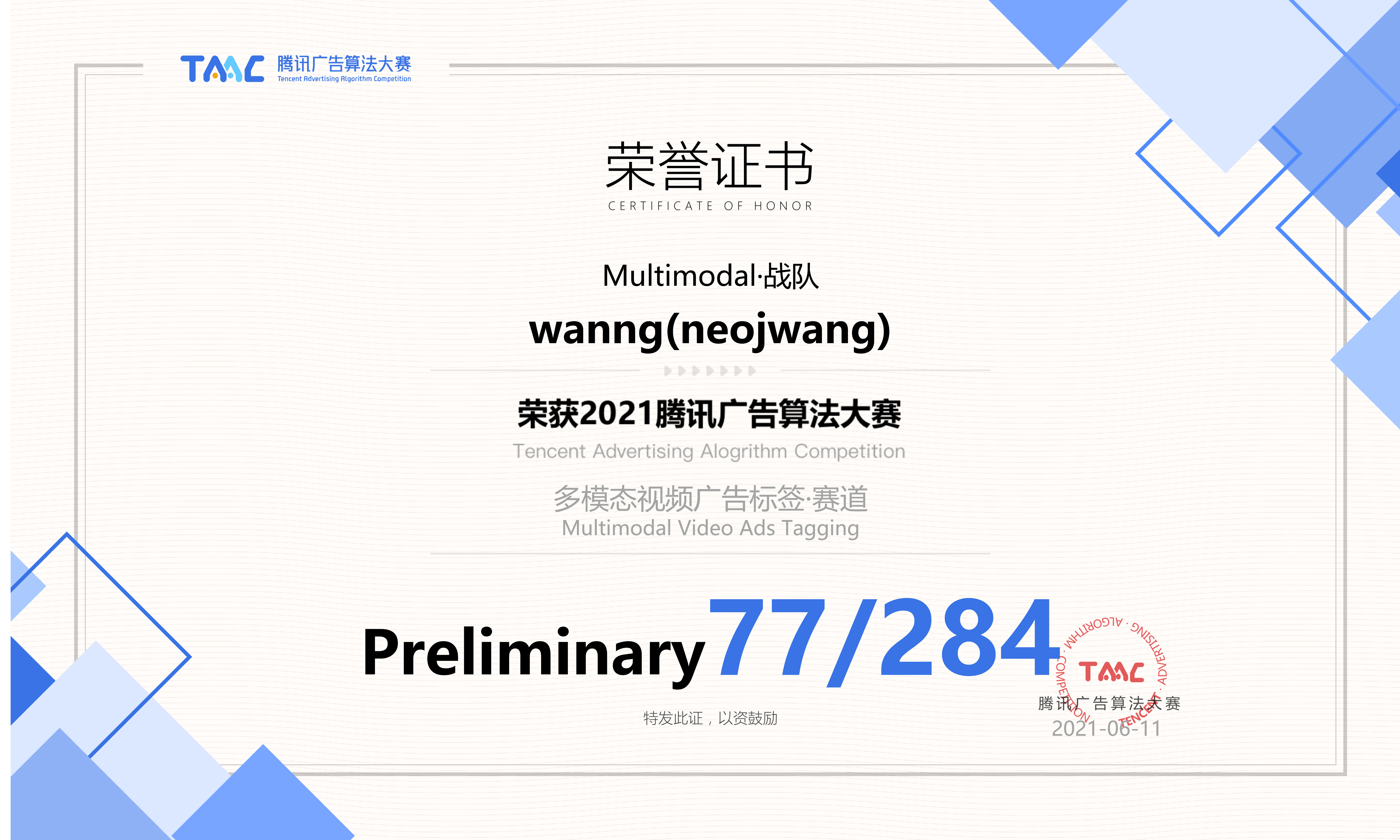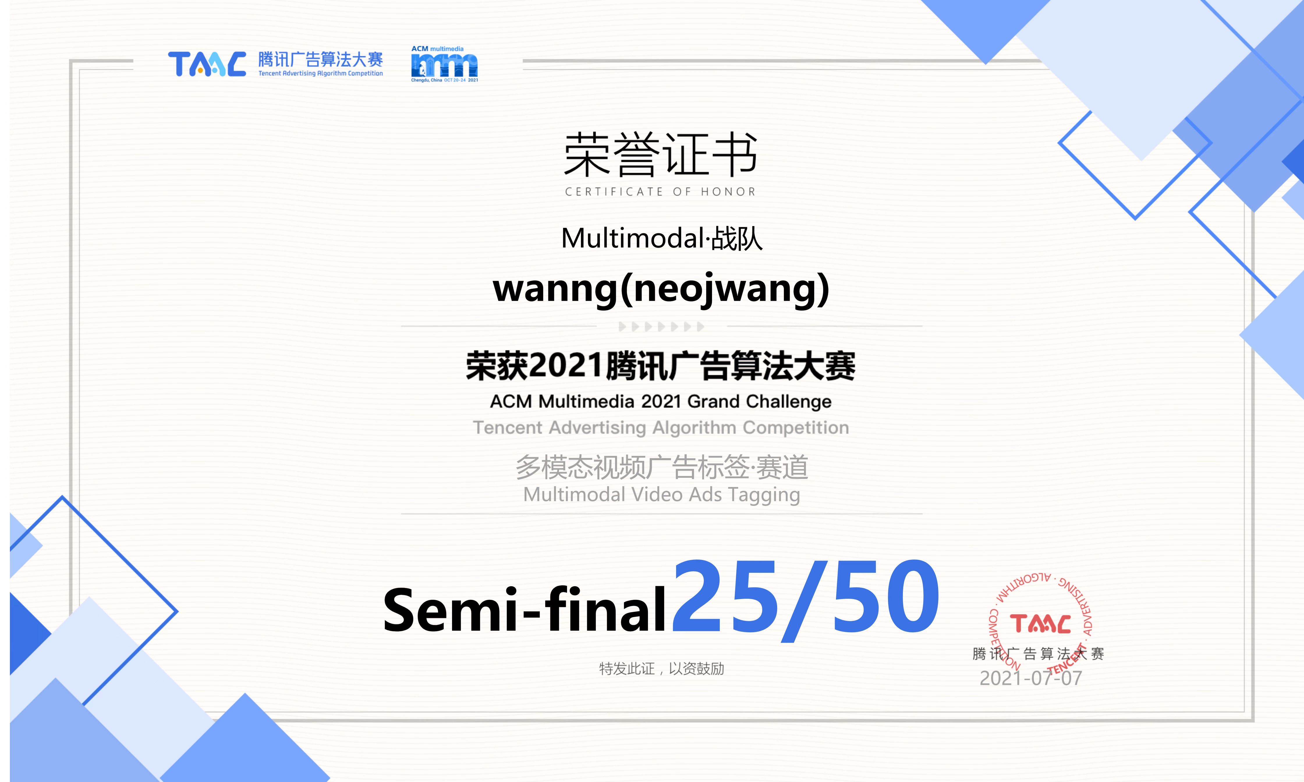 - 主要工作内容:多模态广告推荐相关的研究 (多模态图神经网络, 已中ACM MM 2022)