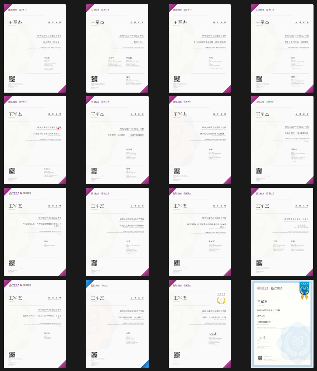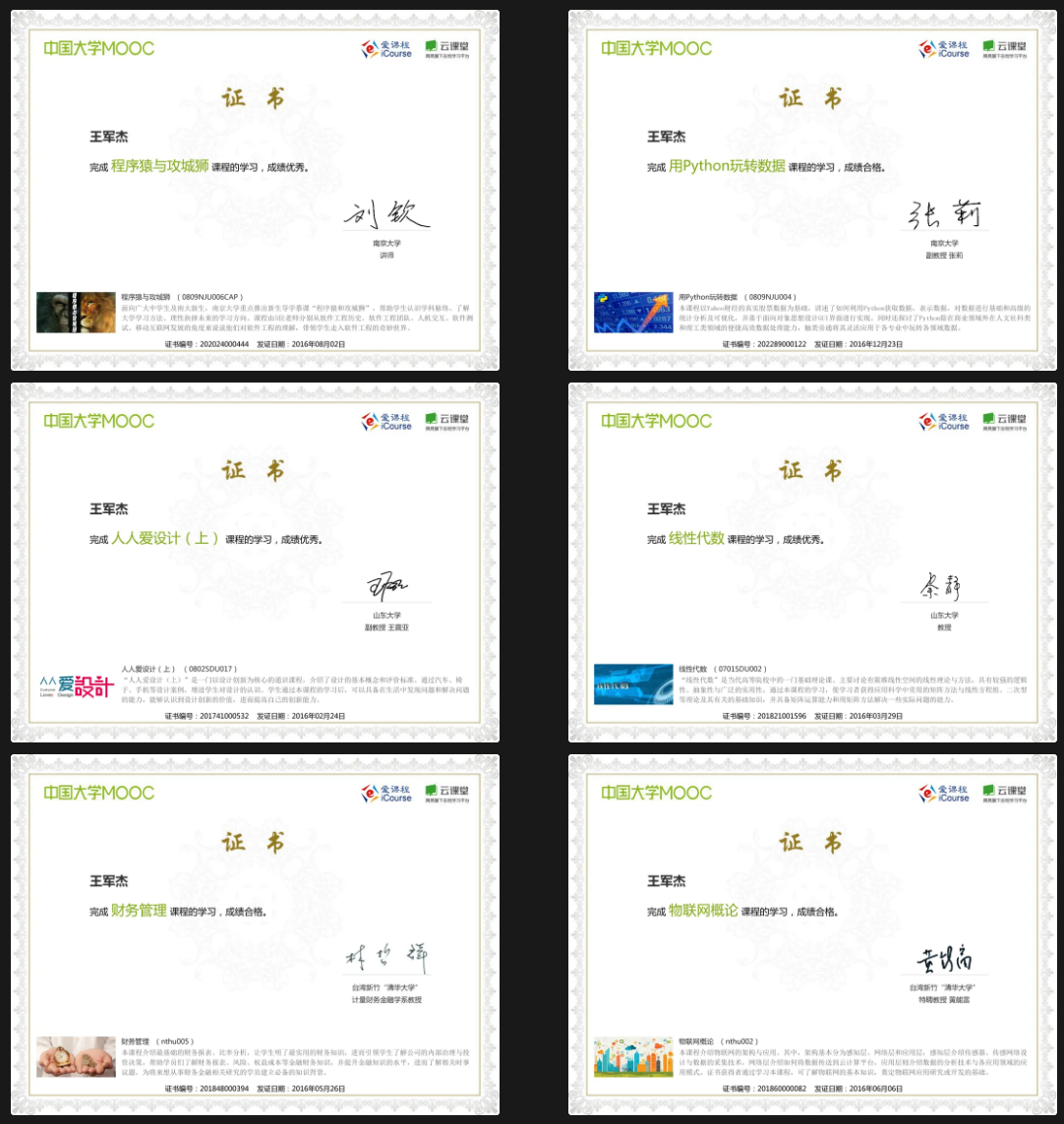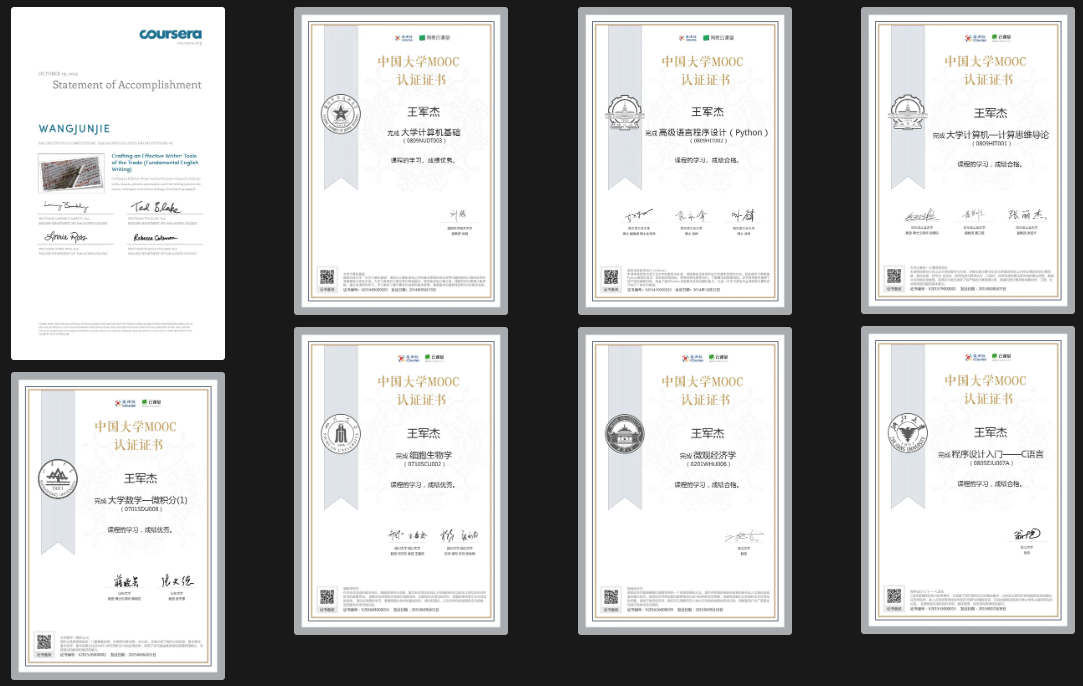 主要是大一和大二期间获得的MOOC证书,约40张